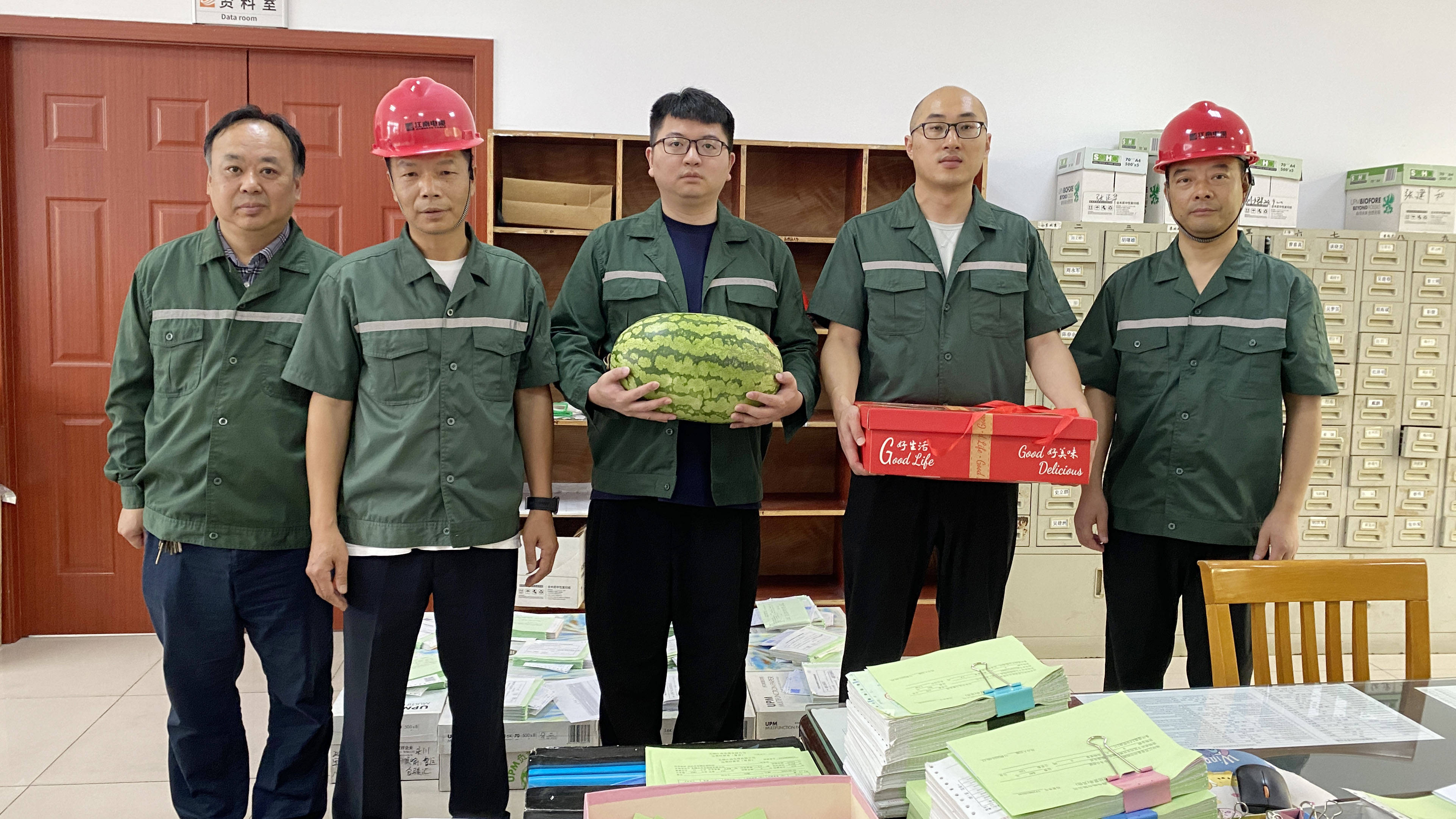 運(yùn)營(yíng)總經(jīng)理蔣君西、副總經(jīng)理芮一云、總經(jīng)理助理胡亞紅赴辦公樓送清涼