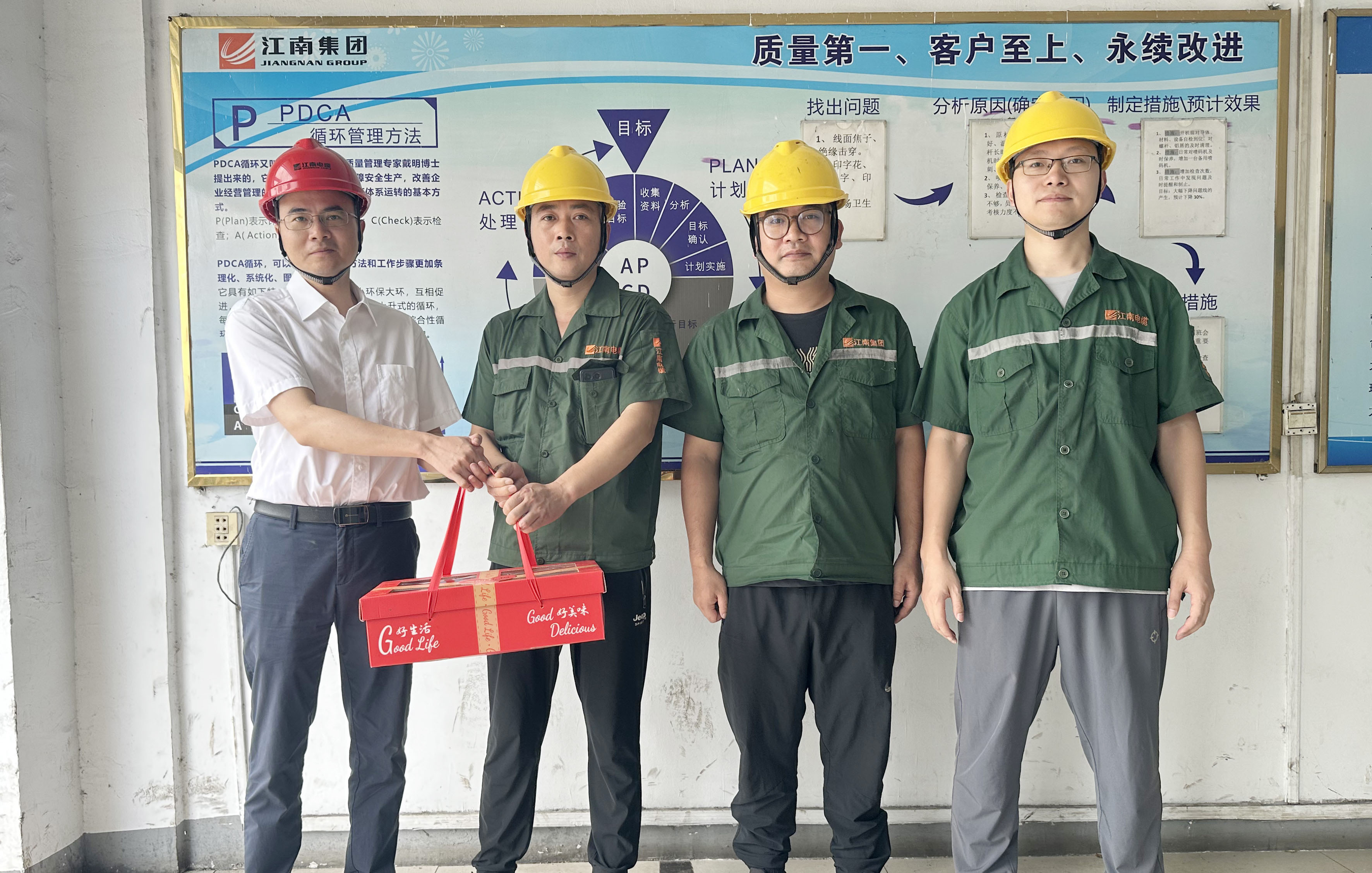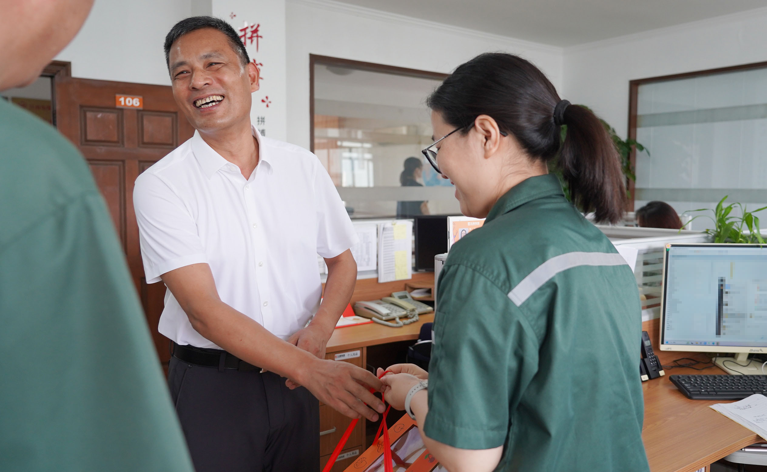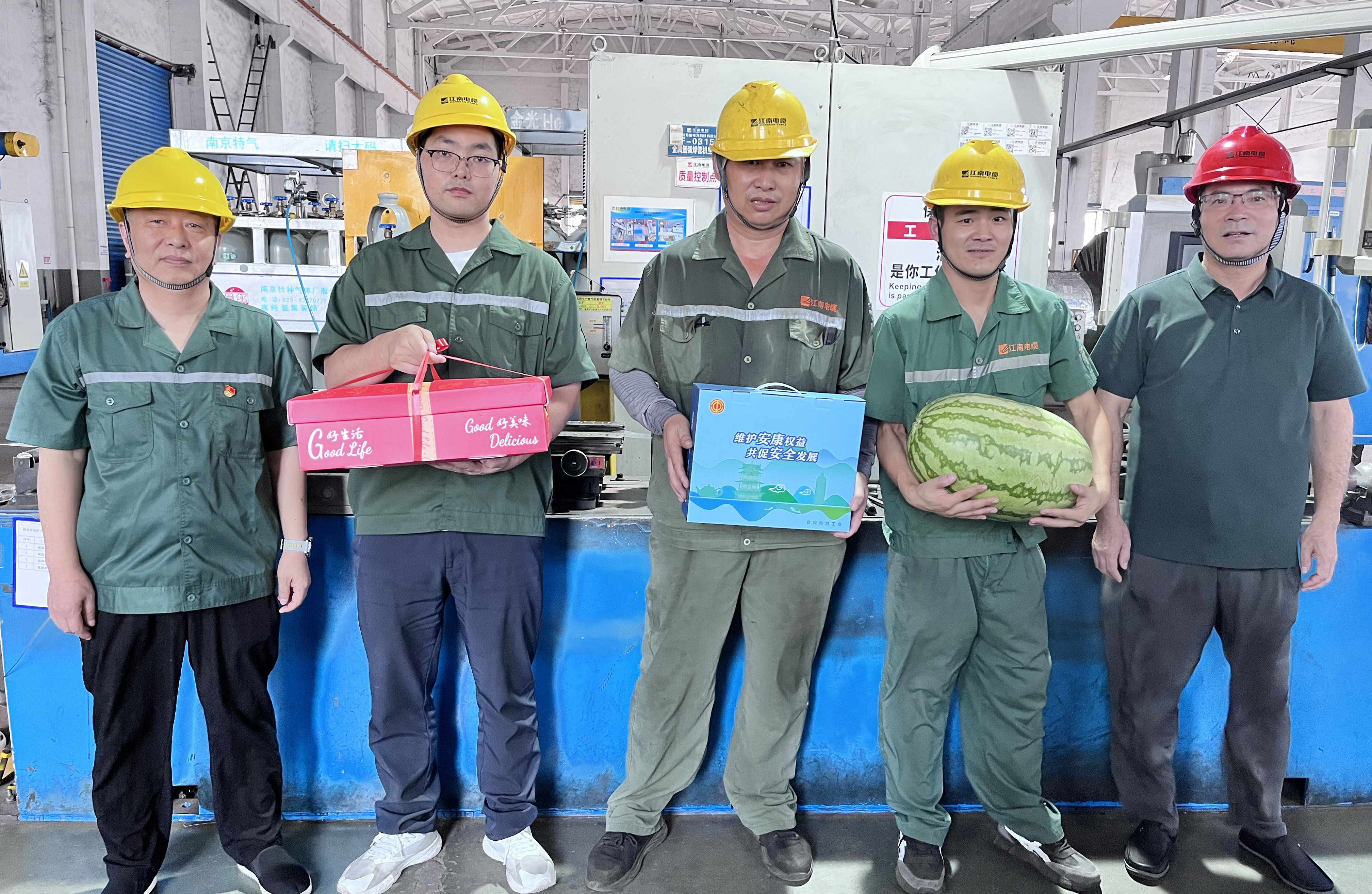 夏日炎炎,暑氣蒸騰。為切實(shí)做好高溫時(shí)節(jié)安全生產(chǎn)和員工關(guān)愛(ài)工作,近日,公司董事長(zhǎng)儲(chǔ)輝、運(yùn)營(yíng)總經(jīng)理蔣君西帶領(lǐng)領(lǐng)導(dǎo)班子成員深入車間一線與后勤部門,開(kāi)展“情系員工 夏送清涼”慰問(wèn)活動(dòng),為不畏酷暑、堅(jiān)守崗位、辛勤奉獻(xiàn)的員工送上關(guān)懷與問(wèn)候。