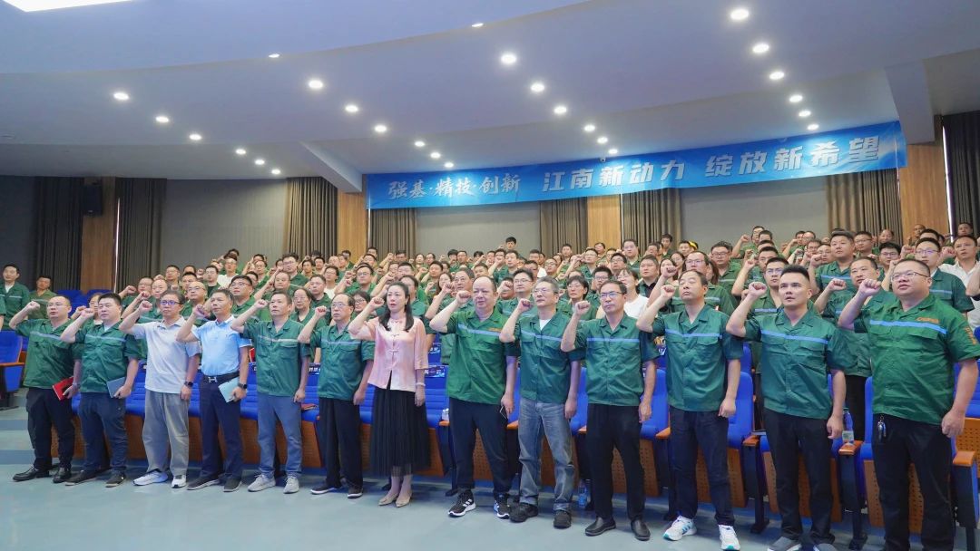 全體成員起立,以莊重姿態(tài)宣讀誓詞:勇于挑戰(zhàn)、奮戰(zhàn)競賽、致力創(chuàng)新、以終為始,鎖定目標(biāo)知行合一,滿懷奮斗激情,永遠(yuǎn)做江南新的動力,綻放新的希望!